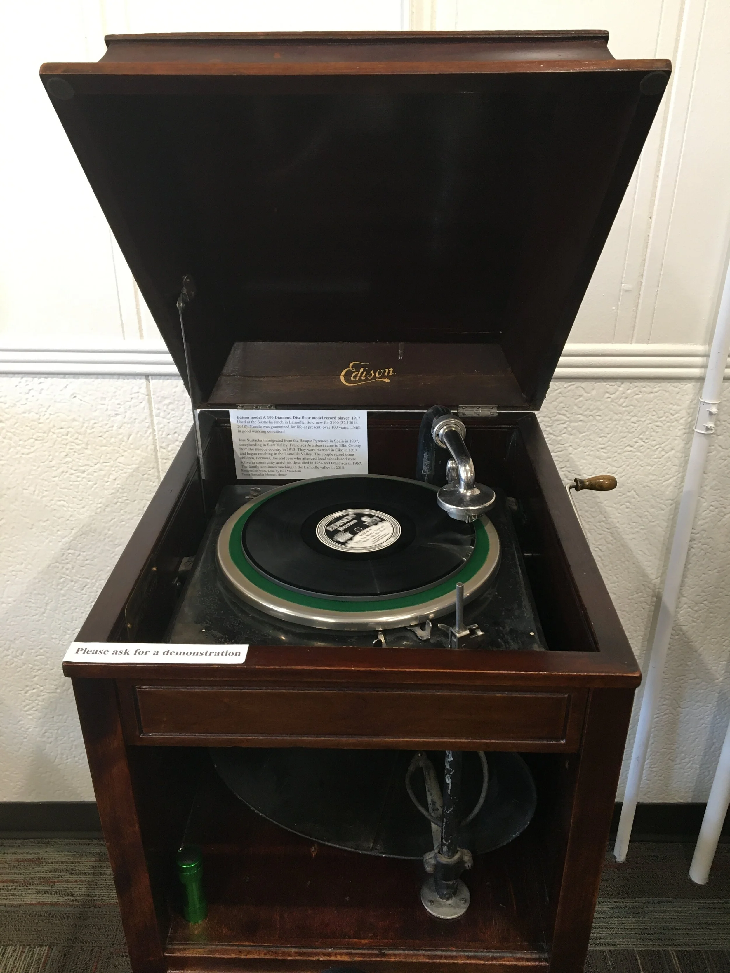 After discussing the incredible life history of Garcia, his craftsmanship, and his effect on Elko, we also talk about an Edison record player, made in 1917. If you make it to the museum, ask for a demo, It still plays records! Stay tuned after the video and you will hear a recording of the Edison record "When You Were A Tulip And I Wore A Big Red Rose" Jan played for us.